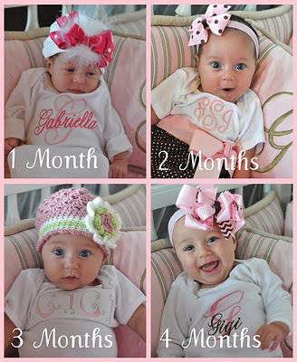 She is getting soooo big! Love her sweet little smile and those chunky-monkey thighs. Enjoy this month to the fullest. :)